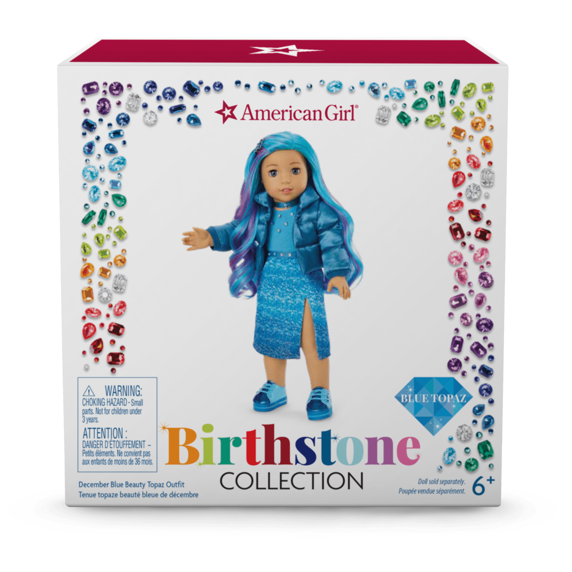 Shimmery-blue and cool as ice, this blue topaz birthstone-inspired ensemble is a dream for December birthdays and streetwear-chic fashion fans.