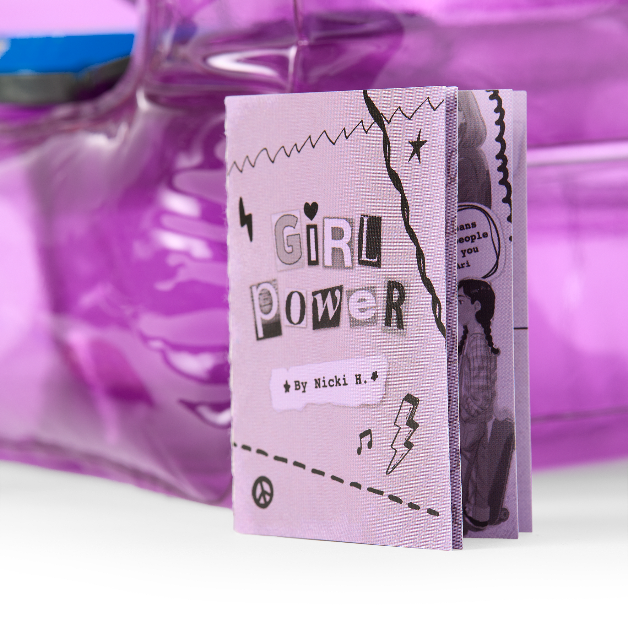 A printed paper zine-like a homemade magazine-that is a doll-sized version of the one Nicki creates in her story