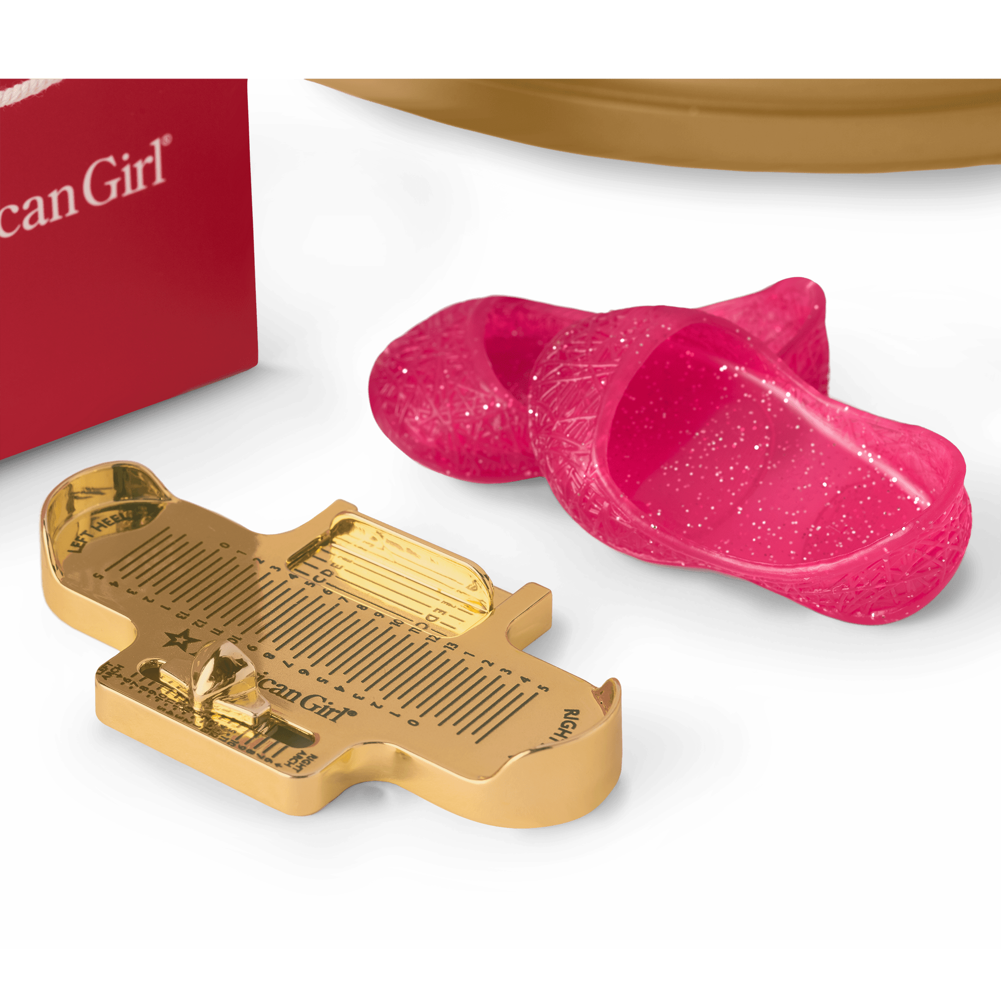 Two pink American Girl shoe boxes with two pieces of tissue paper that fit on the shelves