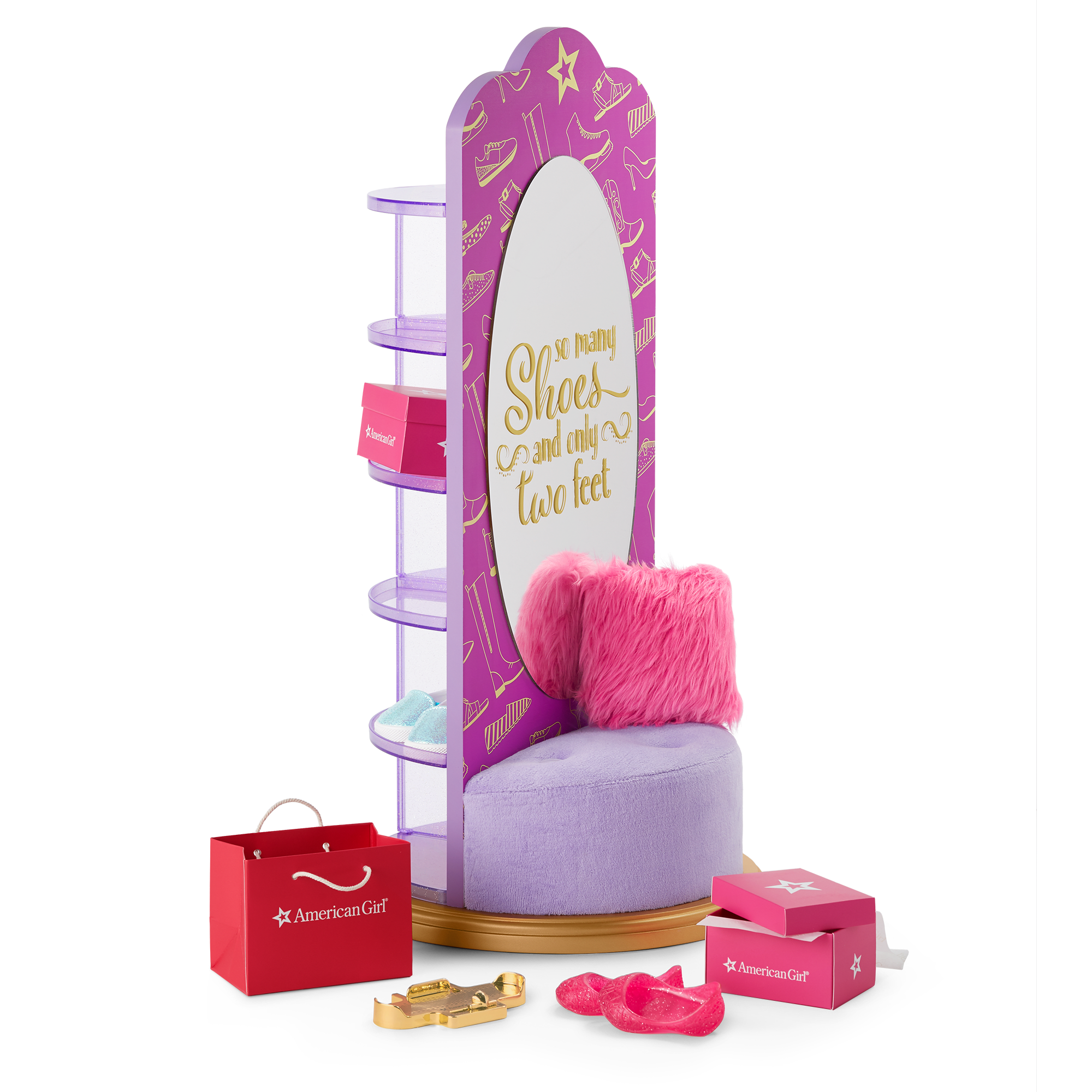From cowgirl boots to sneakers to sandals, there are so many shoes to choose-and only two feet. Shop, try on, store, and collect them all with this special set that includes: